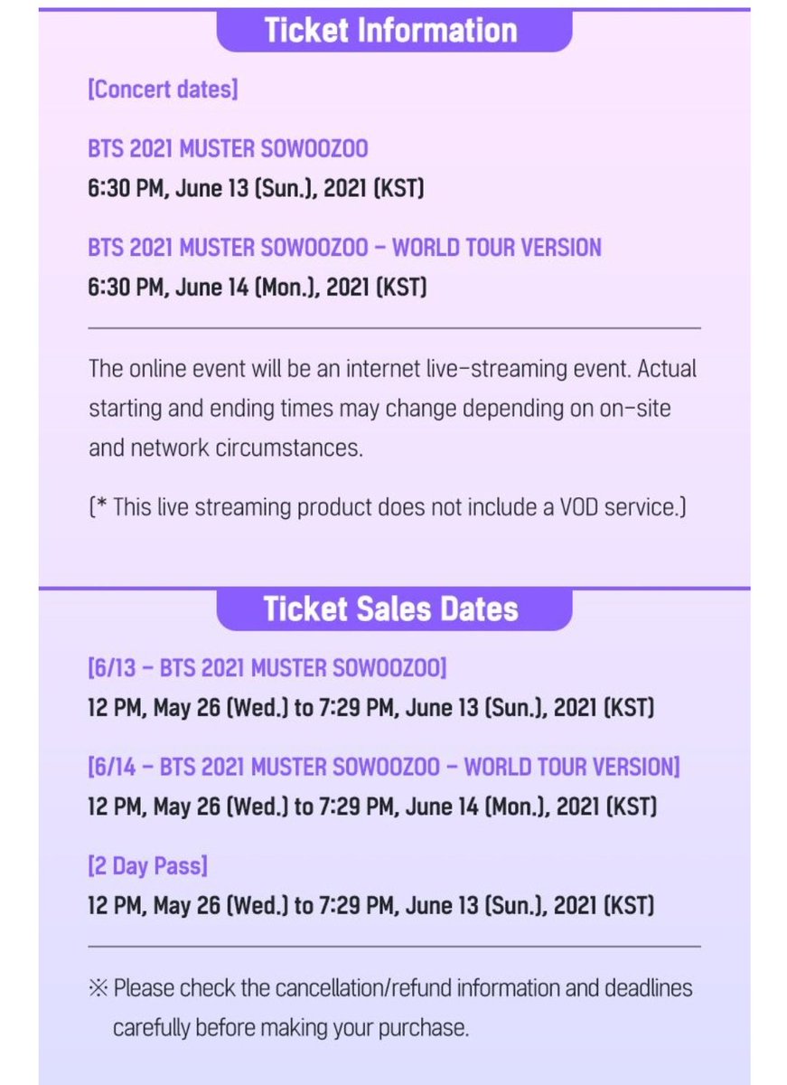 Here's a look at where you can buy its tickets and how much do they cost bts sowoozoo. We will provide an additional notice with information on purchasing tickets for the online streaming.